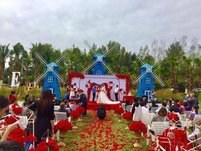白鹭湾湿地山庄特有天然超大草坪,宽敞明亮的大厅,超大LED高清显示屏,加专业宴会厨师团队,可同时容纳1000余人的婚宴接待。 适合各类型中式婚礼,西式婚礼,草坪婚礼等特色婚礼!